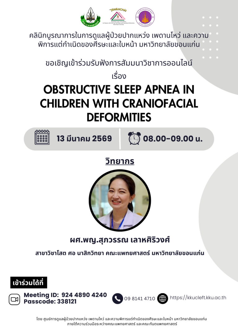 ขอเชิญเข้าร่วมรับฟังการสัมมนาวิชาการออนไลน์ เรื่อง Orthodontic management for alveolar bone grafting in patients with CLP