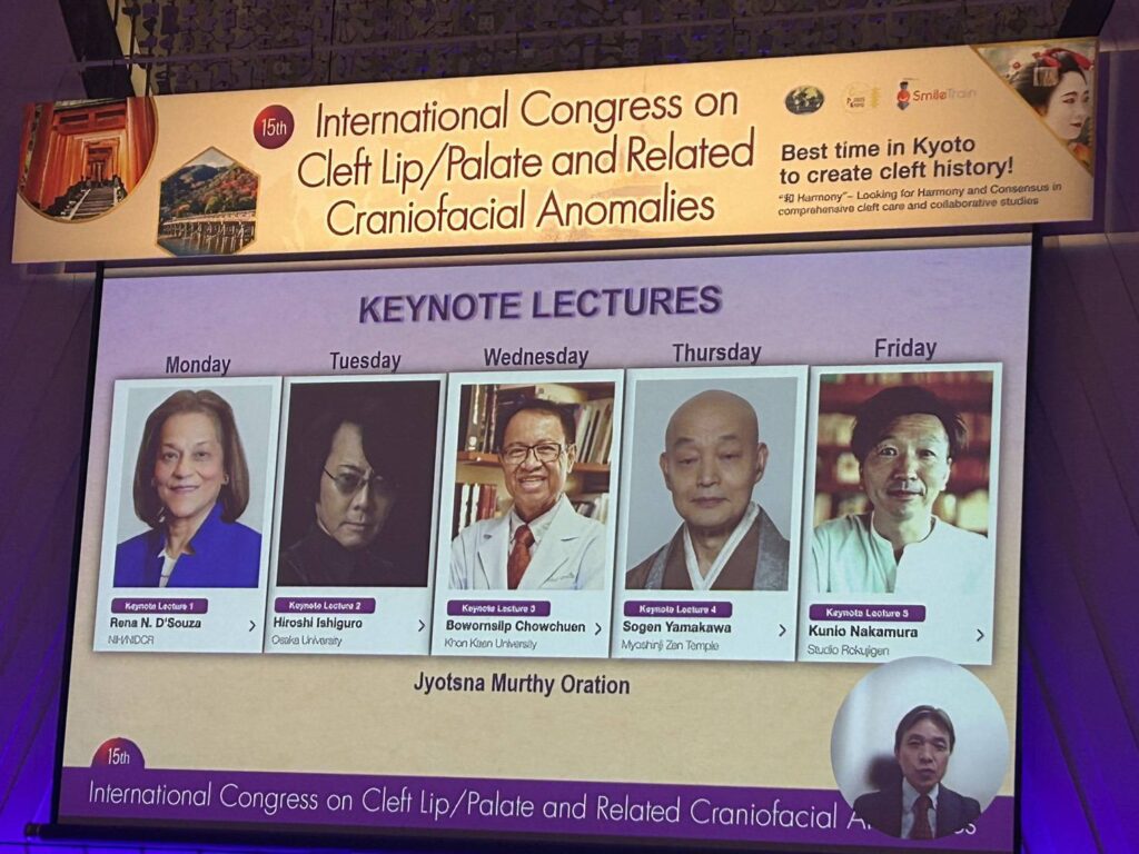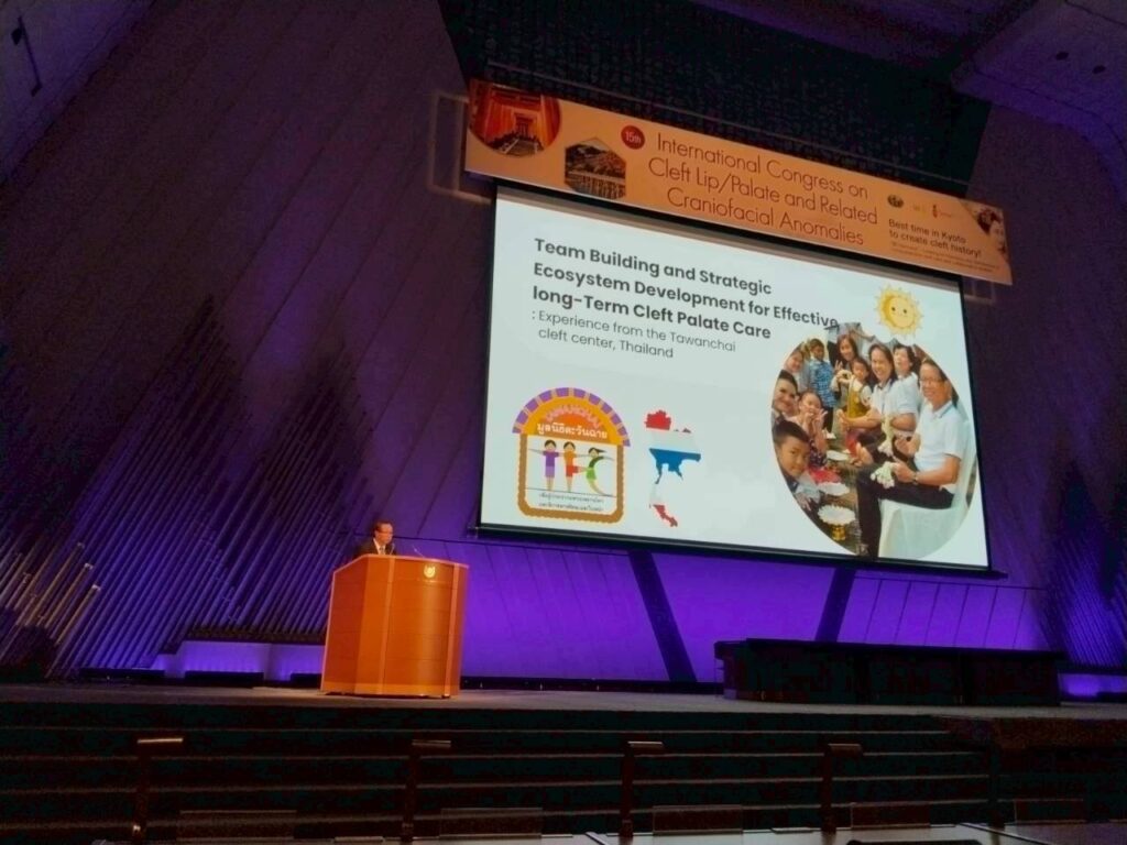 เมื่อวันที่ 20-24 ตุลาคม 2568 ศูนย์ตะวันฉาย มหาวิทยาลัยขอนแก่น นำโดย ศ.นพ. บวรศิลป์ เชาวน์ชื่น กรรมการศูนย์ตะวันฉายและประธานกรรมการมูลนิธิตะวันฉายฯ ได้รับเกียรติเป็น Keynote Speaker ในงาน 15th International Congress on Cleft Lip / Palate and Related Craniofacial Anomalies (CLEFT 2025 Kyoto, Japan) ณ Kyoto International Conference Centre, Kyoto, Japan โดยเป็นเวทีสำคัญระดับนานาชาติที่รวบรวมผู้เชี่ยวชาญด้านการแพทย์จากทั่วโลกเพื่อแลกเปลี่ยนองค์ความรู้และนวัตกรรมในด้านการดูแลรักษาผู้ป่วยที่มีภาวะปากแหว่งเพดานโหว่ และความผิดปกติของศีรษะและใบหน้า