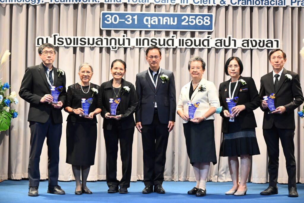 - ศ.ดร.เบญจมาศ พระธานี ได้รับ รางวัลรองชนะเลิศ ประเภท Poster Presentation Research สำหรับการนำเสนอผลงานวิจัยเรื่อง “Prevalence of Voice Disorders and Correlation Between Hypernasality and Acoustic Characteristics in Children with Cleft Lip and Palate” การศึกษาภาวะการผิดปกติของเสียงและความสัมพันธ์ระหว่างการมีอาการเสียงผิดปกติ (Hypernasality) กับลักษณะทางเสียงในเด็กที่มีปากแหว่งเพดานโหว่