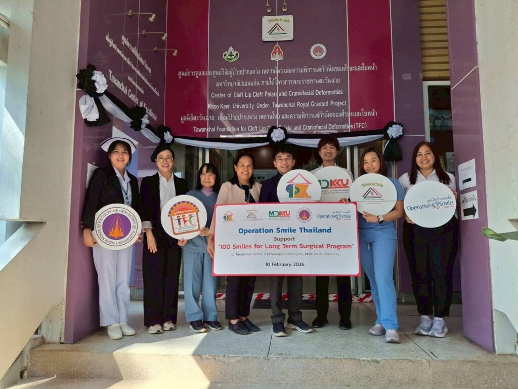 ในโอกาสนี้ คณะผู้สนับสนุนได้เยี่ยมชมการให้บริการรักษาแบบสหสาขาวิชาชีพ ณ คลินิกฝึกพูด โรงพยาบาลศรีนครินทร์ คณะแพทยศาสตร์ และคลินิกทันตกรรมจัดฟัน คณะทันตแพทยศาสตร์ มหาวิทยาลัยขอนแก่น พร้อมทั้งติดตามผลการรักษาและคุณภาพชีวิตของผู้ป่วยปากแหว่งเพดานโหว่ ผู้ป่วยแผลไฟไหม้น้ำร้อนลวก และผู้ป่วยพิการใบหน้า ซึ่งสะท้อนถึงการดูแลอย่างต่อเนื่องและครบวงจร