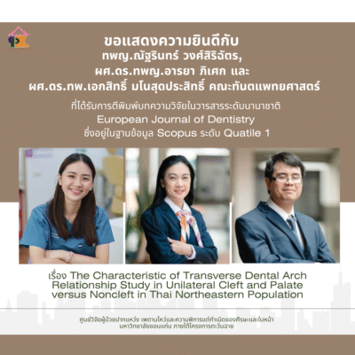 นักศึกษาระดับบัณฑิตศึกษาและอาจารย์คณะทันตแพทยศาสตร์ มหาวิทยาลัยขอนแก่น ตีพิมพ์บทความวิจัยในวารสารระดับนานาชาติ Q1